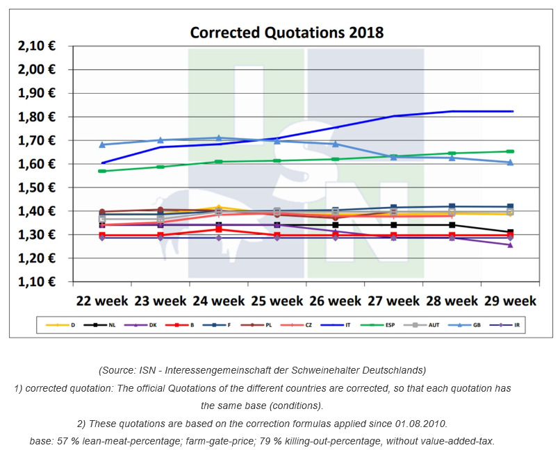 隨著大量游客蜂擁至歐洲南部國(guó)家,這些地方的夏季燒烤正如火如荼。因此,肉類需求依然維持在高位。西班牙生豬價(jià)格小幅上漲。與過(guò)去數(shù)周相比,歐洲其他國(guó)家的生豬價(jià)格變化不大,幾乎沒(méi)有變。隨著氣溫繼續(xù)變暖,待宰豬數(shù)量保持低位,屠宰量下降,胴體體重同樣減輕。奧地利上周胴體重量低于96.5公斤。活體市場(chǎng)依然在等待收購(gòu)價(jià)格上漲,屠企繼續(xù)壓價(jià)。