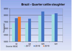 第一季度巴西共屠宰了789萬(wàn)頭牛,同比增加121060頭(即1.6%),但還是比前一季度低3.6%。