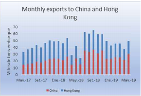五月對(duì)中國(guó)的直接出口量達(dá)到去年十一月以來(lái)最高