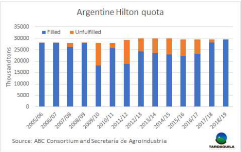 近十年來(lái)阿根廷第一次完成希爾頓配額