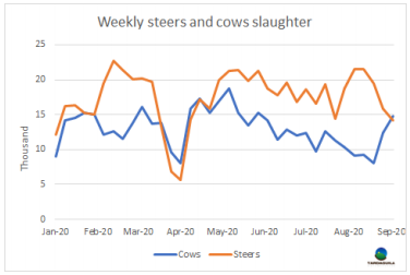 20周以來母牛屠宰量首次超過閹牛屠宰量