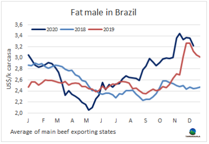 新的一年阿根廷將獲得2021年在美國市場2萬噸的肉類免稅配額,這些配額按照“先到先得”的原則分配。因此,被批準出口至美國的肉類加工商已經(jīng)準備向美國出口肉類,在其他市場,尤其是歐盟市場波動之際,這是一個很好的補充。據(jù)了解,后部位肉的售價在5500-5800美元/噸,還有一些西冷,由于歐盟市場的反彈,西冷價格將會上漲。