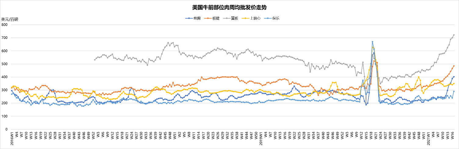 第三部分 美國(guó)國(guó)內(nèi)市場(chǎng)牛部位肉價(jià)格變化
