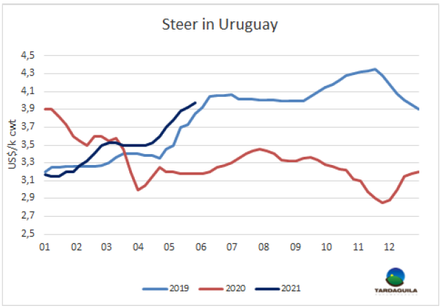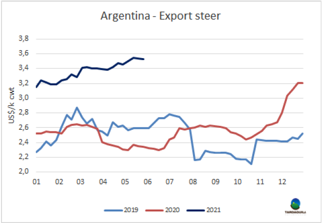 巴拉圭出口商期望智利宣布的重新開放活動能夠重新激活進(jìn)口市場。目前進(jìn)口商20部位全牛采購價不超過5400美元/噸,距出口商對新合同的報價低400美元/噸。
