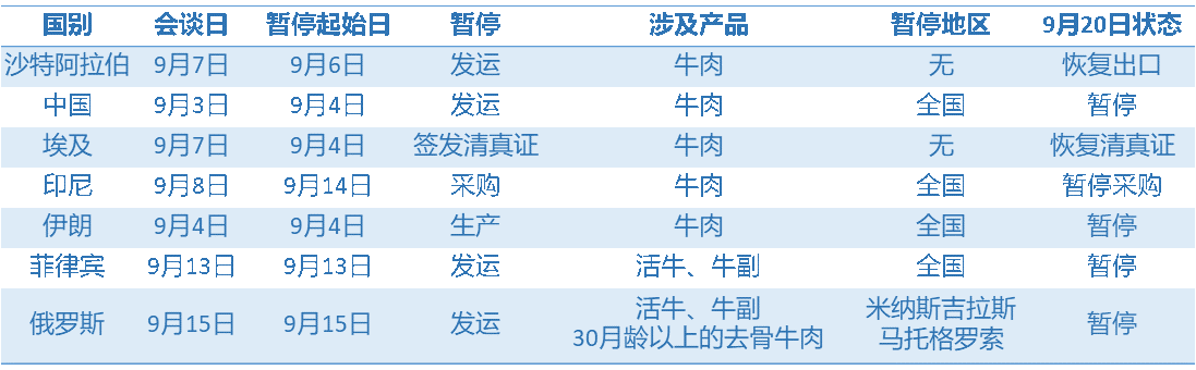 下表匯總了一些國家及地區(qū)對(duì)巴西牛肉進(jìn)口采取的限制措施。