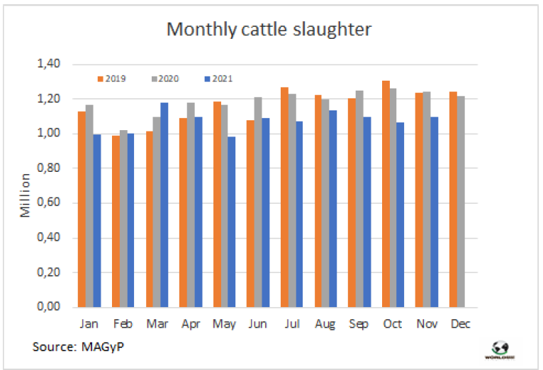 官方數(shù)據(jù)顯示,11月牛屠宰量為109.7萬頭,比上月增加3%,比去年同期減少12%。2021年前11個月,屠宰量累計達1182.7萬頭。母牛占屠宰量的44.6%。屠宰量最大的工廠是Swift(巴西Minerva集團)、Coto以及Rioplatense、Gorina和ArreBeef。