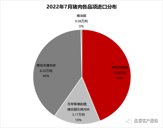 從進(jìn)口品項(xiàng)看,以進(jìn)口其他凍豬肉和其他凍豬雜碎為主,這兩品項(xiàng)進(jìn)口量之和占比84%。