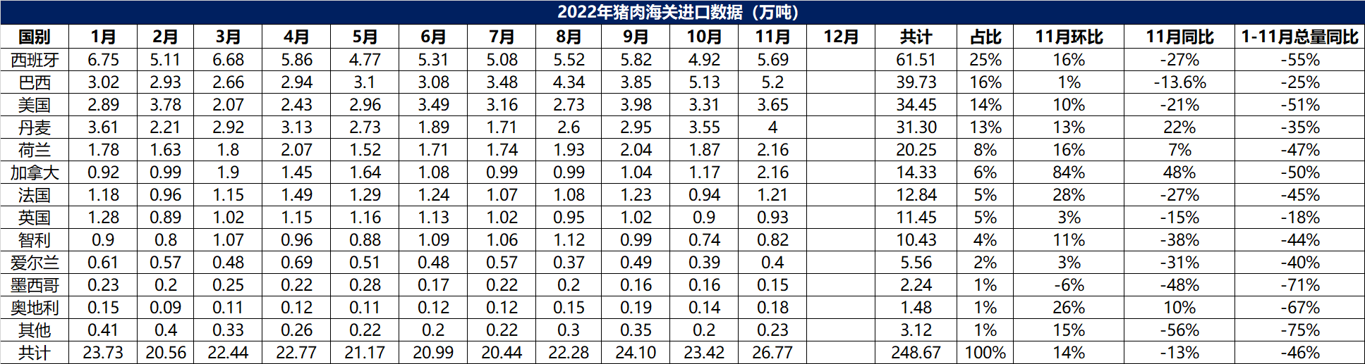 2022年1-11月冷凍豬肉進(jìn)口數(shù)據(jù)