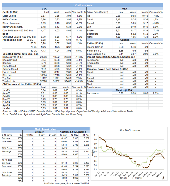 一家經(jīng)營智利市場的代理商的表示智利的進口市場仍然疲軟。有一些進口商進行了 "短期采購",用$5,700(CIF價格)購買了巴西的19分體,用$5,200-$6,000(CIF價格)購買了巴拉圭的19分體。同時,巴西牛前價格為$5,100,巴拉圭牛前為$5,200-5,300,這批貨物將在6月底左右到達。