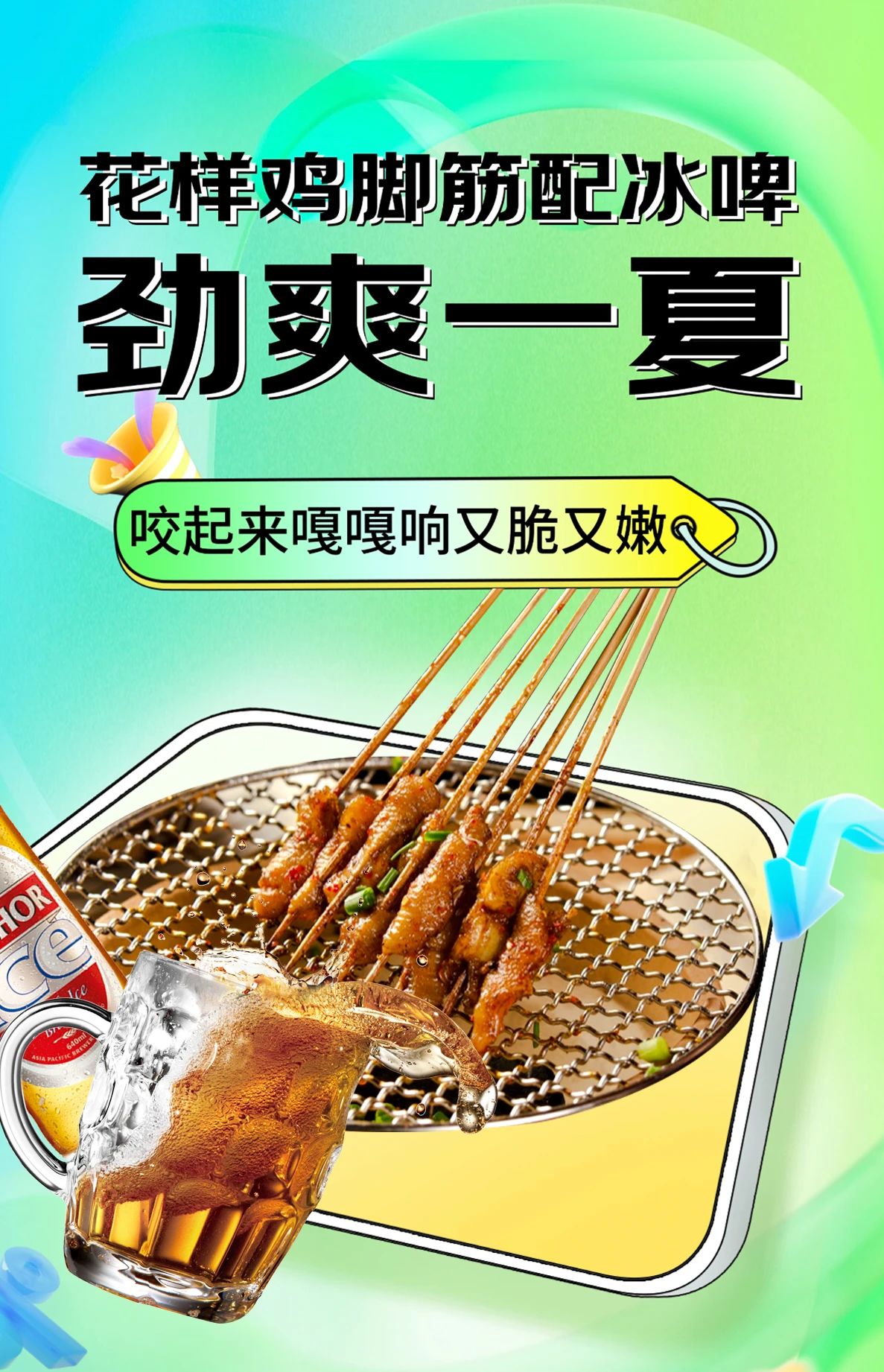 夏日炎炎,總想吃點涼爽夠味的。你有沒有試過雞腳筋配冰???雞腳筋這個名字一聽就很有嚼勁,可烤、燒、炒、拌,還可做冷鍋串串,妥妥冰啤好CP。花樣雞腳筋,具備夏日流量爆款潛質(zhì)。