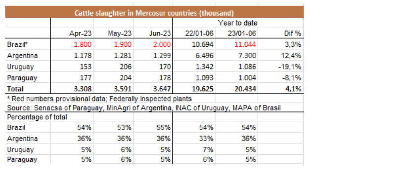 根據(jù)初步數(shù)據(jù),牛的屠宰量將在6月份繼續(xù)保持高位