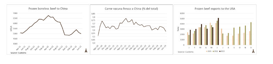 輸華總量為15,565噸,比5月份減少2380噸。中國是烏拉圭6月份出口牛肉的58%的出口國,這是自2020年8月以來的最低比例。中國的進(jìn)口價格的急劇下降和其他國家的堅挺,比如美國,使其減少了主要客戶的優(yōu)勢。