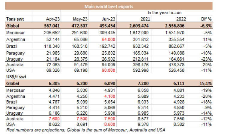 6月份對中國的牛肉出口數(shù)據(jù)顯示,出口量接近去年下半年創(chuàng)下的月度記錄,考慮到近幾個月需求的顯著疲軟,這一點令人震驚。