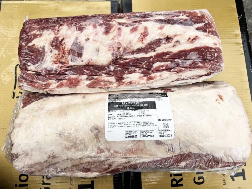 作為阿根廷技術(shù)最先進的屠宰場,1920廠的自動化程度非常高,選取牛齡不超過2歲的小閹牛(95%都是黑安格斯牛),屠宰后的牛胴體經(jīng)過機器自動拍照分級,根據(jù)級別貼上不同標簽,靜置24至48小時,待溫度達到4-7℃開始分割,分前中后三條分割線分割,包裝好的牛肉通過傳送帶自動分類,速凍48小時左右,然后傳送到冷庫。出庫時由機器把紙箱自動堆放到托盤上,纏繞裹膜后裝入集裝箱。工廠70%的產(chǎn)能用于出口,其中70%出口到中國,其他出口地為歐盟、中東地區(qū)、美國等。