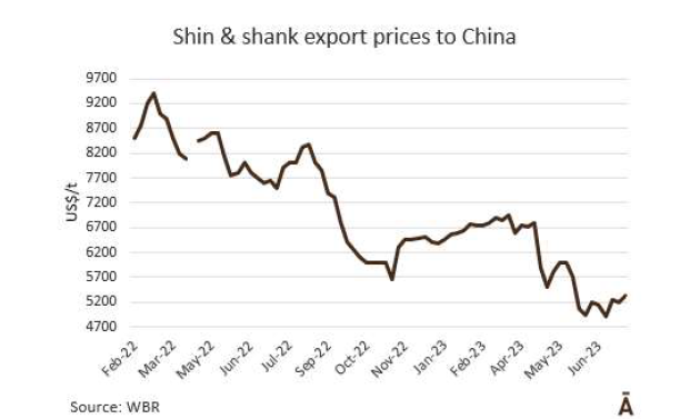 6月份冰鮮、冷凍和加工牛肉的出口總量略高于5萬噸(4.1萬噸肉和0.9萬帶骨肉)。根據(jù)統(tǒng)計,這是2023年迄今為止的最低月產(chǎn)量,比去年5月低24%,比6月低15%。SENASA衛(wèi)生服務(wù)部門的數(shù)據(jù)顯示六月份出口量比5月高,差異“主要是運往中國的數(shù)量上,實際上比預(yù)計少1萬噸?!?/span> 據(jù)美國廣播公司報道,“牛肉屠宰和生產(chǎn)一直處于高水平,6月份出口量的意外下降,主要是由于在支付國外運費方面出現(xiàn)了困難。就貨值而言,6月份的出口額接近2.15億美元,比上月降低22.5%,比去年的3.46億美元降低了38%。