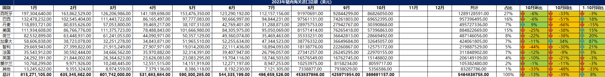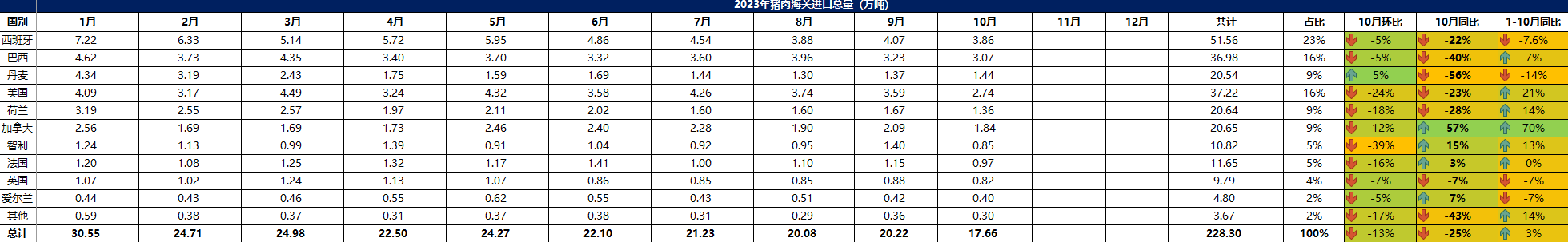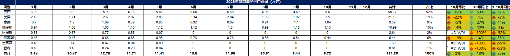 2023 年 10月冷凍豬肉進(jìn)口概況