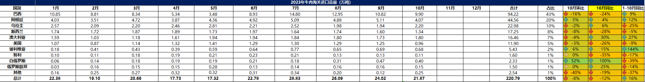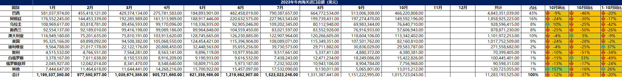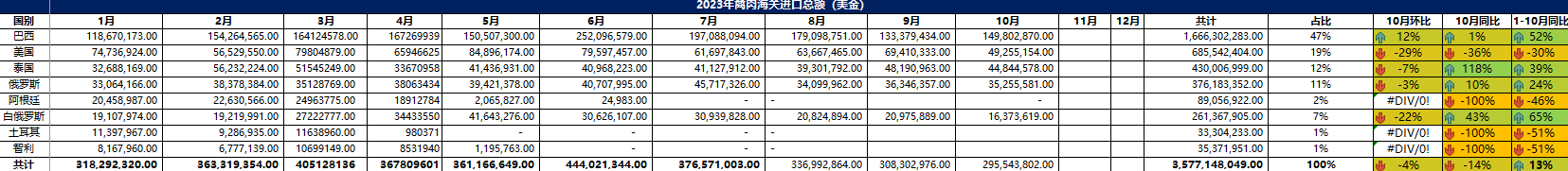 2023 年 10月冷凍牛肉進(jìn)口概況