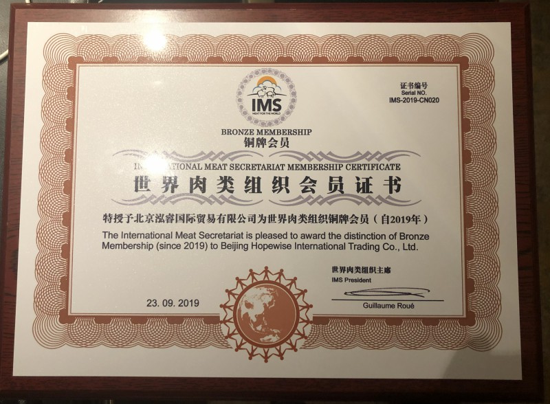 9月23日,北京泓睿國(guó)際貿(mào)易有限公司成功加入世界肉類組織并成為銅牌會(huì)員。