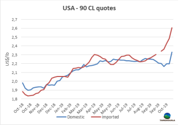近幾周美國進口價格呈現(xiàn)上漲趨勢,烏拉圭進口商稱,現(xiàn)在對于90CL產(chǎn)品來說美國市場和中國市場相比仍有300美元/噸的差距。他說“現(xiàn)在手里前部件套有貨人的都愿意賣中國市場,因為現(xiàn)在其他市場都無法與中國競爭?!?span>