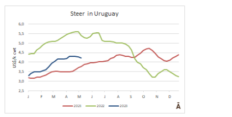 在烏拉圭,盡管供應(yīng)短缺,但價(jià)格仍在下降。出口公牛的參考價(jià)格在每公斤4.22美元。