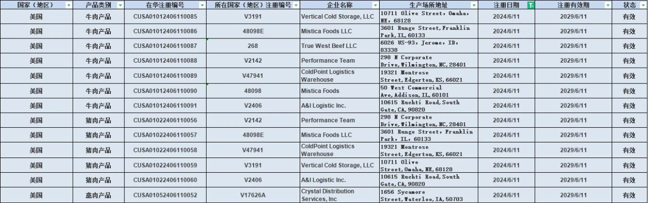 2024年6月11日新增13家美國(guó)肉類產(chǎn)品企業(yè),