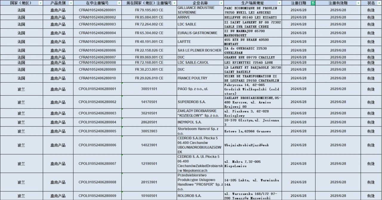 2024年6月28日新增19家肉類產(chǎn)品企業(yè),