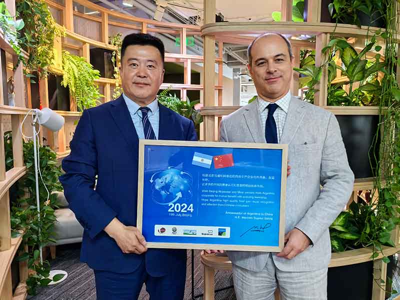 另外,阿根廷駐華大使對中國牛肉消費市場表示關(guān)切,就消費者是否知道我司牛肉產(chǎn)品的產(chǎn)地等問題進行詢問。大使就阿根廷乃至南美的農(nóng)業(yè)市場情況與我司進行溝通,提出阿根廷的乳制品市場也有巨大的開發(fā)空間,孫總也積極表示愿意提供幫助。