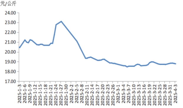 本周國內(nèi)瘦肉型白條豬肉出廠價(jià)格(以下簡稱“豬肉價(jià)格”)環(huán)比微漲,周內(nèi)價(jià)格先上漲后小幅下跌。周前期正值上月底、本月初交接時(shí)期,規(guī)模養(yǎng)殖場出欄計(jì)劃減少,疊加清明節(jié)日對(duì)豬肉需求有一定提振,支撐生豬及豬肉價(jià)格上漲。周后期,隨著豬肉價(jià)格上漲,客戶采購意愿減弱,經(jīng)銷商壓價(jià)意向增強(qiáng),屠宰企業(yè)為保證銷量而小幅下調(diào)售價(jià)。