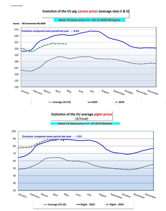 The piglet price in week 18 was EUR87/head, with down 1.1% compared with week 17, down 1.7% compared with 4 weeks ago and down 1.6% compared with the same term of last year.