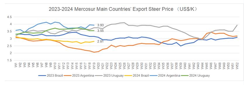 Due to the appreciation of the Brazilian real, the average value of steer in the Mercosur countries increased by 2 cents to $3.14 per kilogram carcass weight this week.